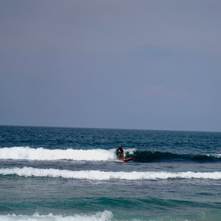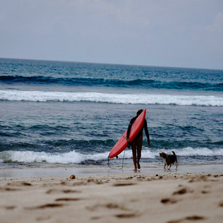 Staying in the bustling city of Kuta, Riley and I decided to venture out to the peninsula into the smaller city of Uluwatu. Known for surfing, beautiful beaches, and nice houses, Uluwatu didn't disappoint. Dreamland Beach, our first stop, led to a deal with a local to rent his vibrant red 9-foot surfboard for the calm waves on a clear, sunny day. Switching off between photography and surfing, Riley and I spent the morning in bliss. Once the late afternoon hit, we found ourselves ravenous and were recommended to try the Cashew Tree Cafe. The Cashew Tree was one of the best meals we had ever had. I got the green matcha vanilla smoothie along with a delicious grain bowl. Stuffed and satisfied, we headed down to Bingin Beach, south of Dreamland and north of the infamous Panang Panang Beach (featured in Eat Pray Love.)
