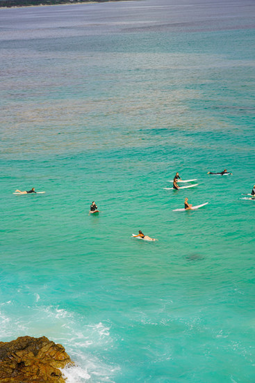 With the first rays of dawn, we awoke with a renewed sense of adventure, ready to hit the road to our next destination: the sun-soaked paradise of Byron Bay. After the 45-minute drive, we walked into the town of Byron Bay, grabbed coffees, and rented boards. We surfed all day, so encapsulated by the white sand beaches, heaps of beautiful surfers, and crystal blue waters that we forgot about the power of the shining sun. Burnt to a crisp, we put on our long, airy pants and loose-fitting tops and traipsed off to happy hour at a rooftop bar. The vibes were young, wealthy, and tropical, resulting in our enjoyment of fruity spritzes. The next day, we surfed again throughout the morning, heading into town for an acai bowl brunch, and surfed again in the afternoon. We surfed until we bled, literally. With no wetsuit, our inner thighs chafed against the 8ft boards to the point where we could no longer continue. But it did not matter; we were exhausted and happy, and our backs and arms were calling it quits.